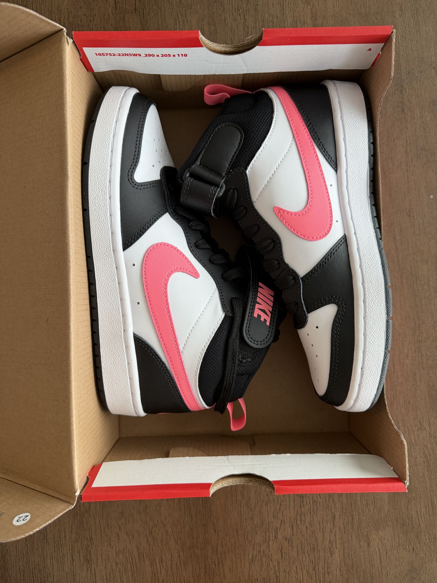 Size 5 youth equals size 6 1/2 adult. Super cool, color combination: black, white, and hot pink. Original price is $79. From a cleaner and smoke free home. Price is pretty firm.