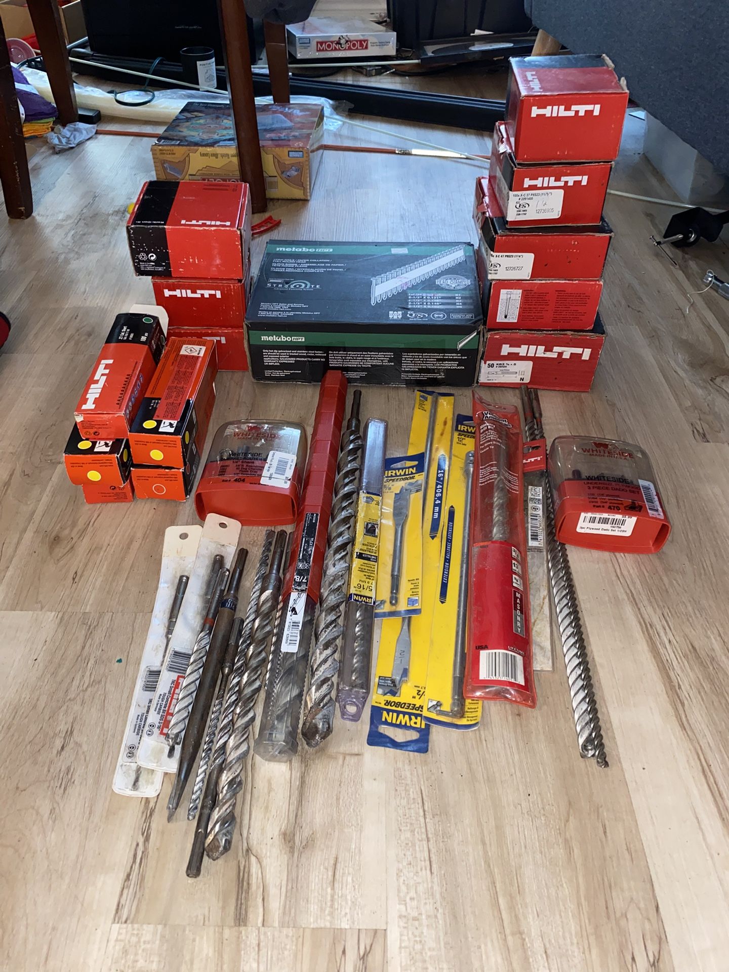 Various Hilti, Irwin, Whiteside, Vermont American Drill Bits