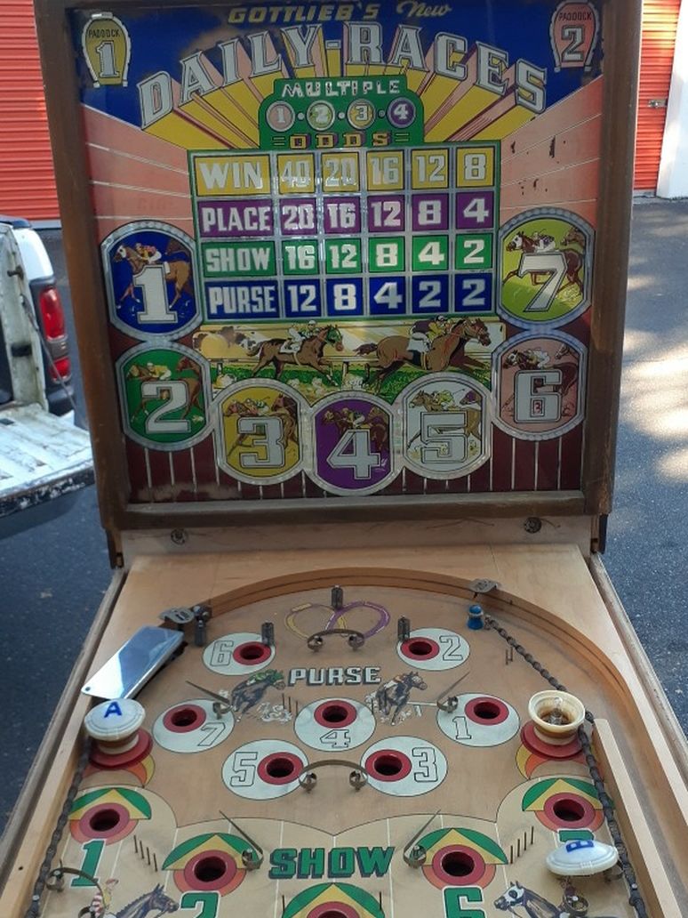 Old pre flipper pinball game. Takes nickles. Has a payout slot so we believe it was a gambling one. Make an offer or if you have any info I'd love to hear more. I wanted to keep but I own a bar and I'm trying to survive. Thanks