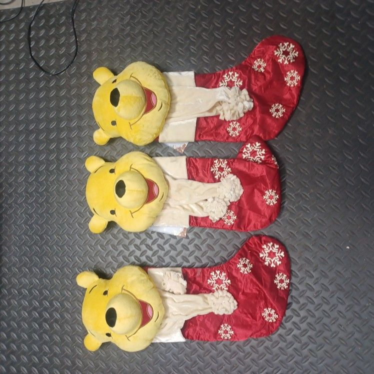 3 Disney Store Winnie The Pooh Plush Head Christmas Stocking Holiday Decor