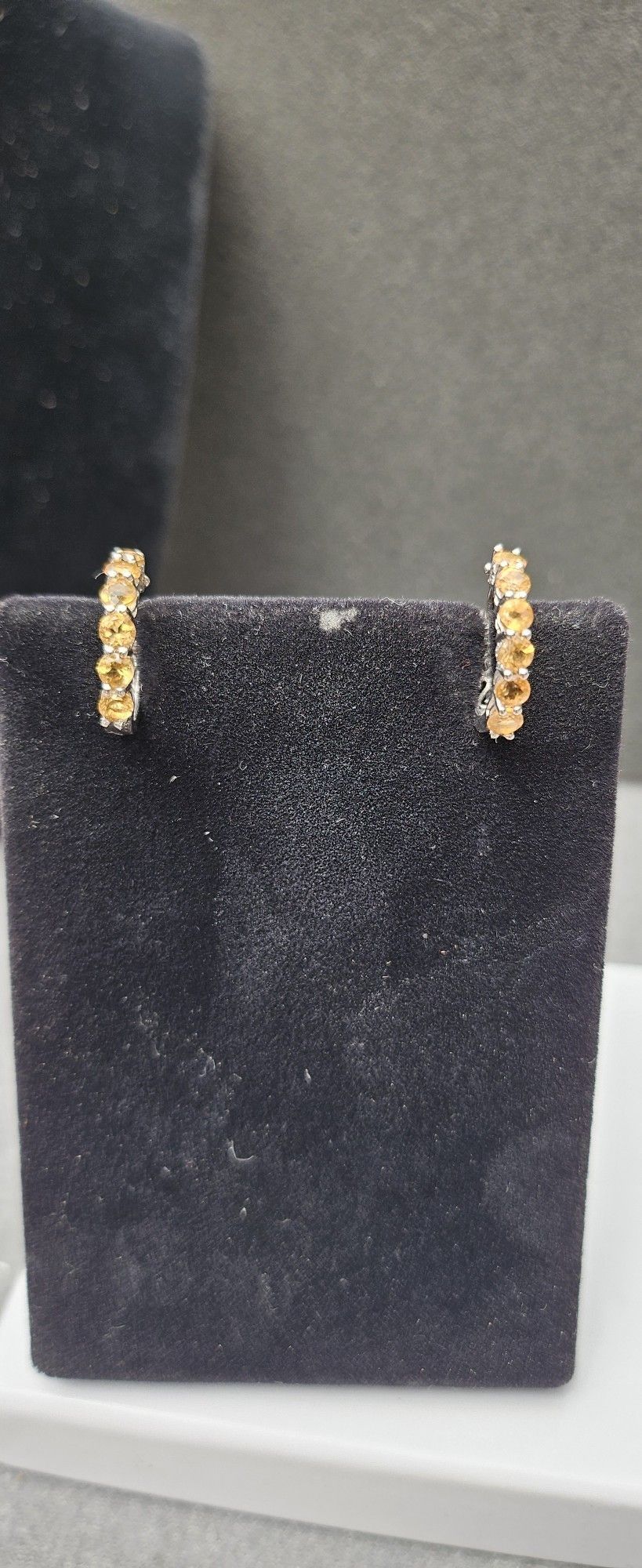 Very pretty small orange Sapphire hoops, sterling silver with snap closure.