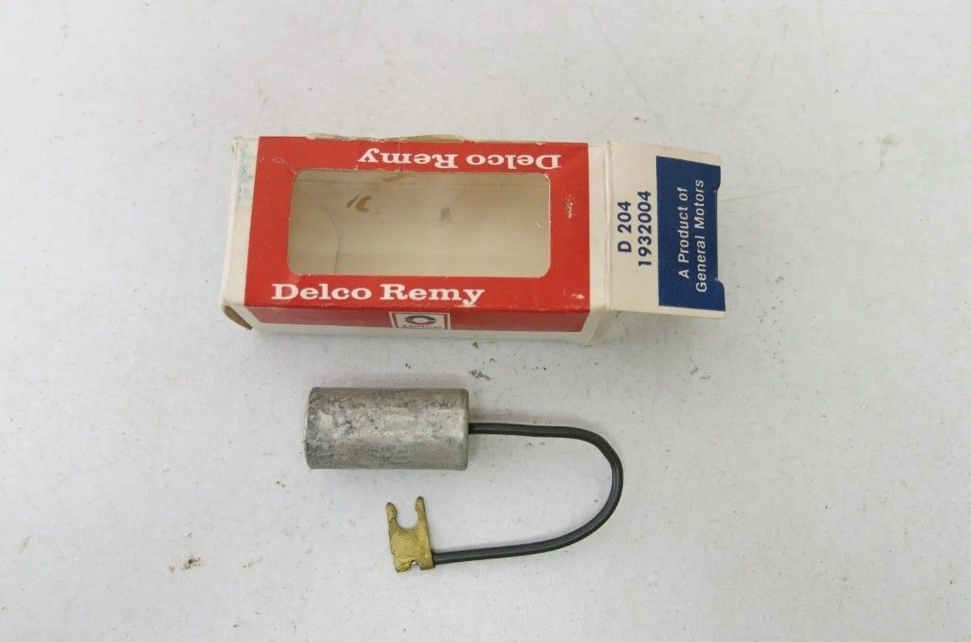 VINTAGE Delco Remy Condenser fits 58-74 Buick Chevy (D204/1932004) —-------------------------------------------- The NOS (New Parts, Old Stock) parts may have some insignificant surface corrosion due to the extended storage period, however, such surface corrosion will not have any adverse effect on the part and it's functionality. —-------------------------------------------- *** NOTE: The packaging is showing it's age from years on the shelf in storage, etc. Please see pictures. —-------------------------------------------- IF IT'S LISTED, IT'S AVAILABLE!!! —-------------------------------------------- From a Smoke and Pet Free Home. We do our best to ship the next business day! Be sure to check out our other items and let us know if you would like to bundle and not only save on shipping, but also receive an added discount!!! If you have any questions, please, don't hesitate to ask! —-------------------------------------------- IF IT'S LISTED, IT'S AVAILABLE!!! —--------------------------------------------