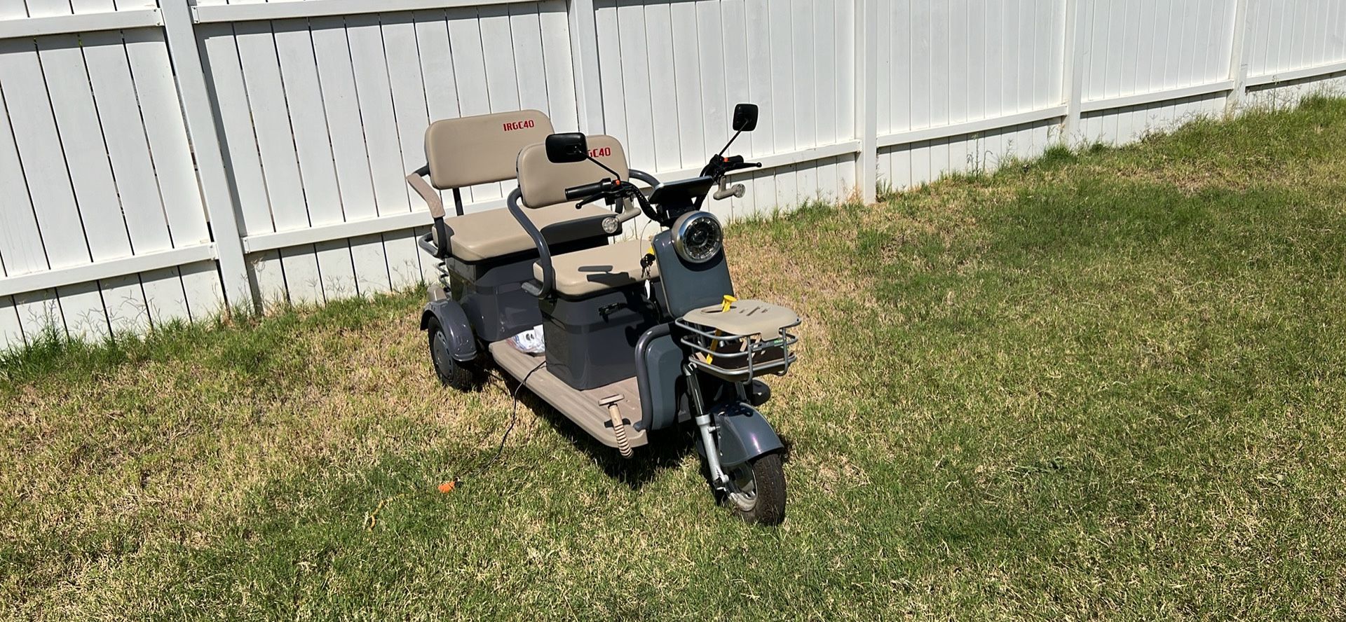 Hello up for sale my luxury three wheel golf cart has 2 key fobs with Alarm also has LCD screen has three speeds as well as reverse has LED headlights and tail lights turn signals and a horn as well sit three people have storage underneath seat seats great for family fun blast to drive