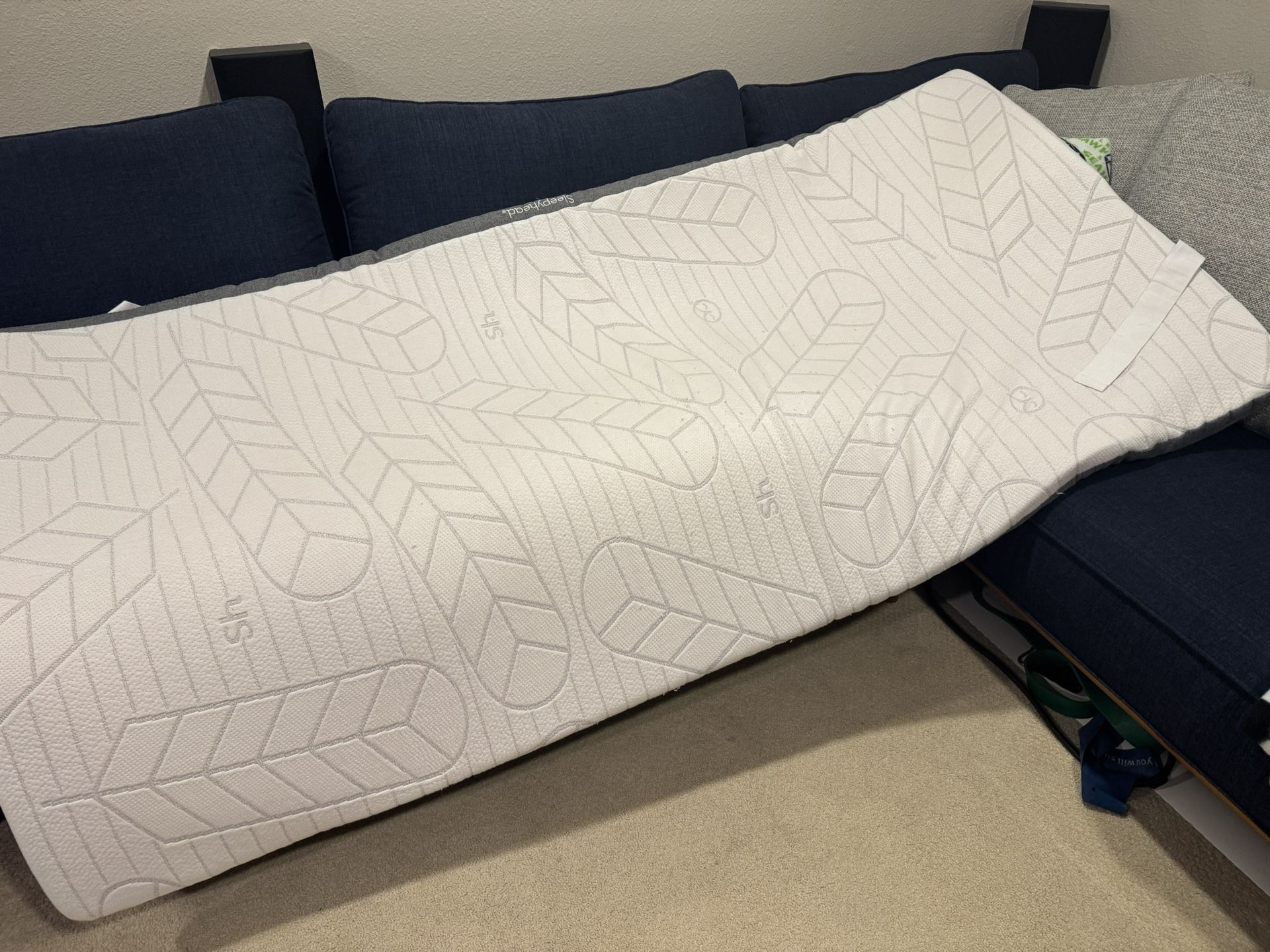 Sleepyhead Twin XL 2- Inch Premium Copper Mattress Topper- Memory Foam used with a quilted waterproof fitted sheet (included), so in excellent condition. Very comfortable-perfect for thin, uncomfortable dorm room mattresses. Used only 2 semesters. Purchased new for $319. Also included is a Twin XL waterproof zippered mattress protector.
