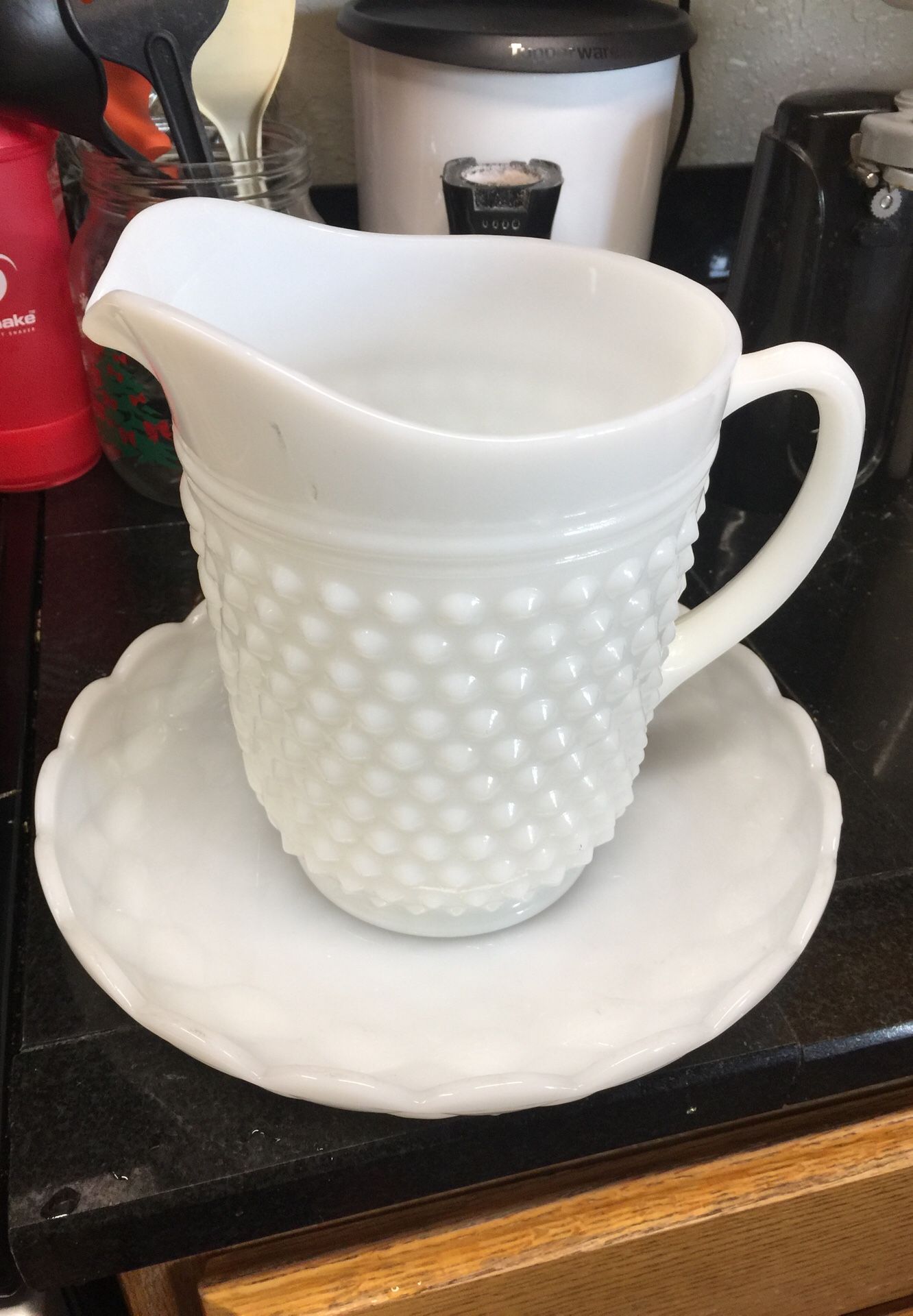 Large pitcher and platter milk glass old no chips 60.00 for both or best offer