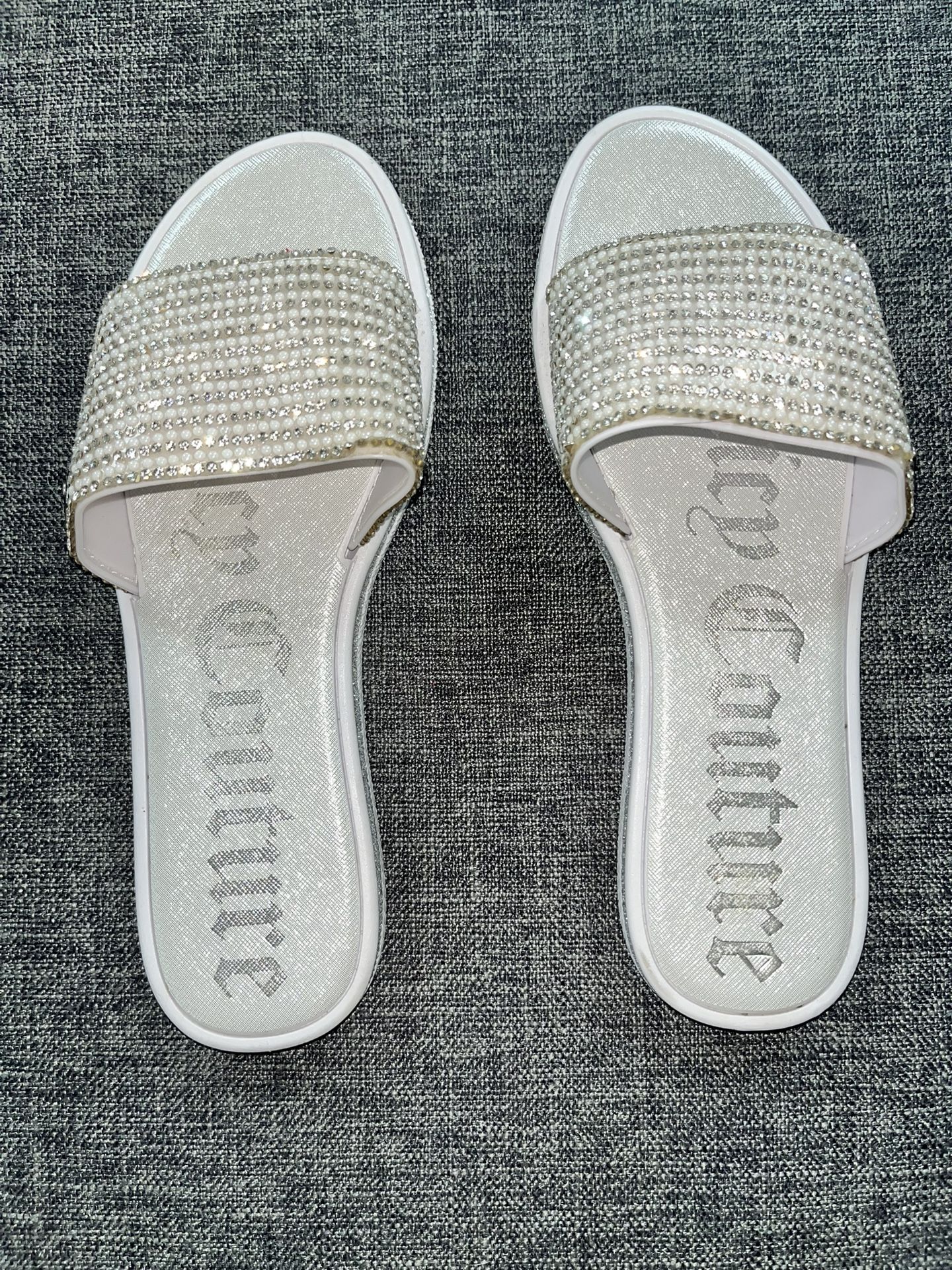 Cute white with crystals juicy couture sandals size 9. Pickup river city market place area