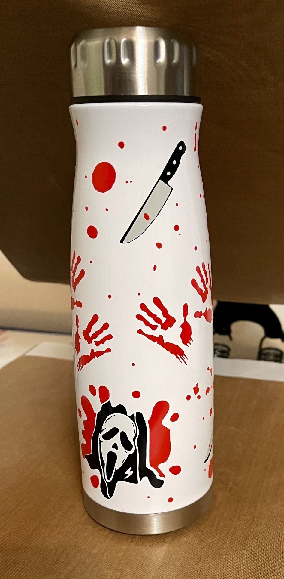 Horror tumbler made with decal vinyl. It’s not sealed with anything. Sold as is. Never been used.