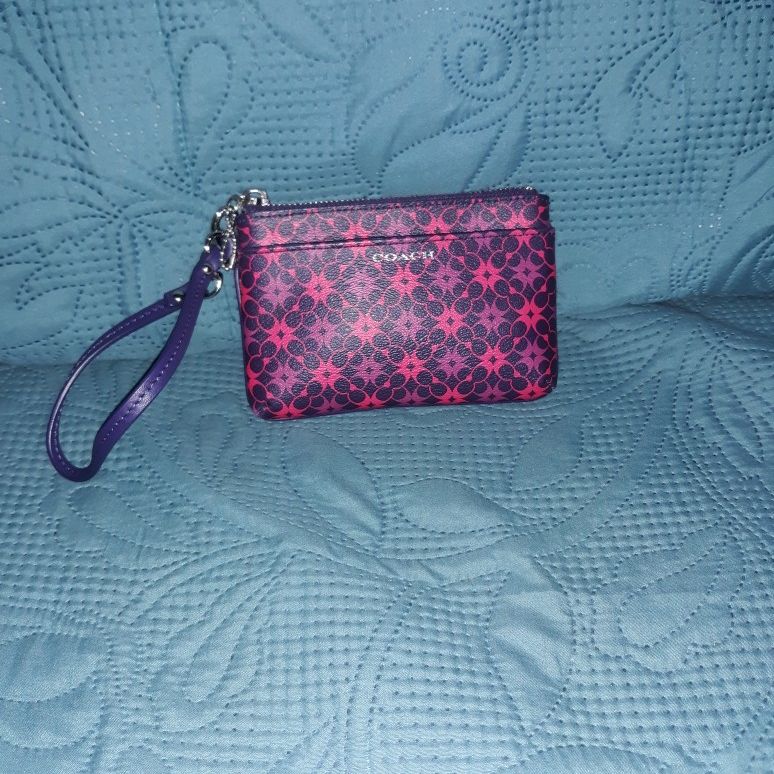 Open box never use COACH Waverly Wristlet Signature Small 50480 Coated Canvas Navy Purple Pink