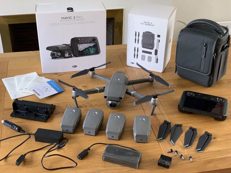 DJI Mavic 2 Pro Drone with Smart Controller in original box excellent condition, 3x drone batteries , battery charger, usb type c controller cable and a set of Polar Pro 3x ND filters.