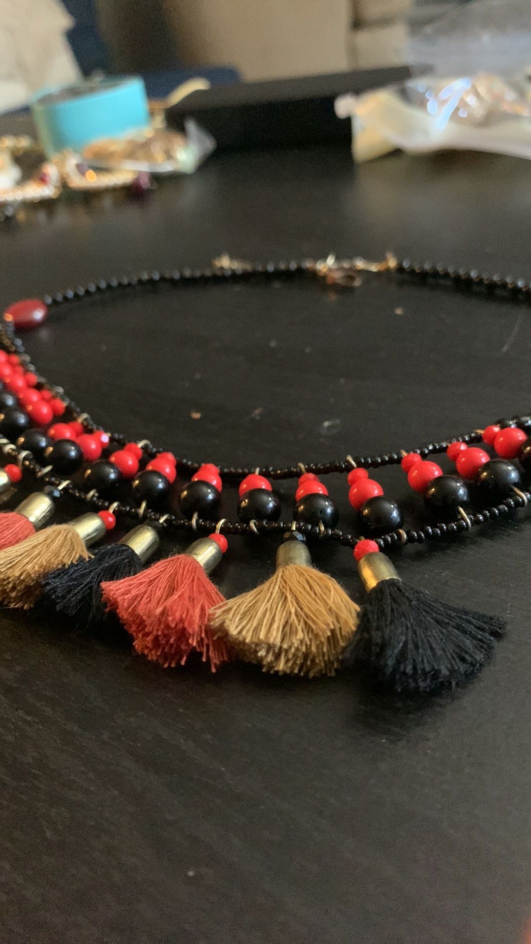 beautiful lightweight beaded necklace, one is black and red beads and other is wooden