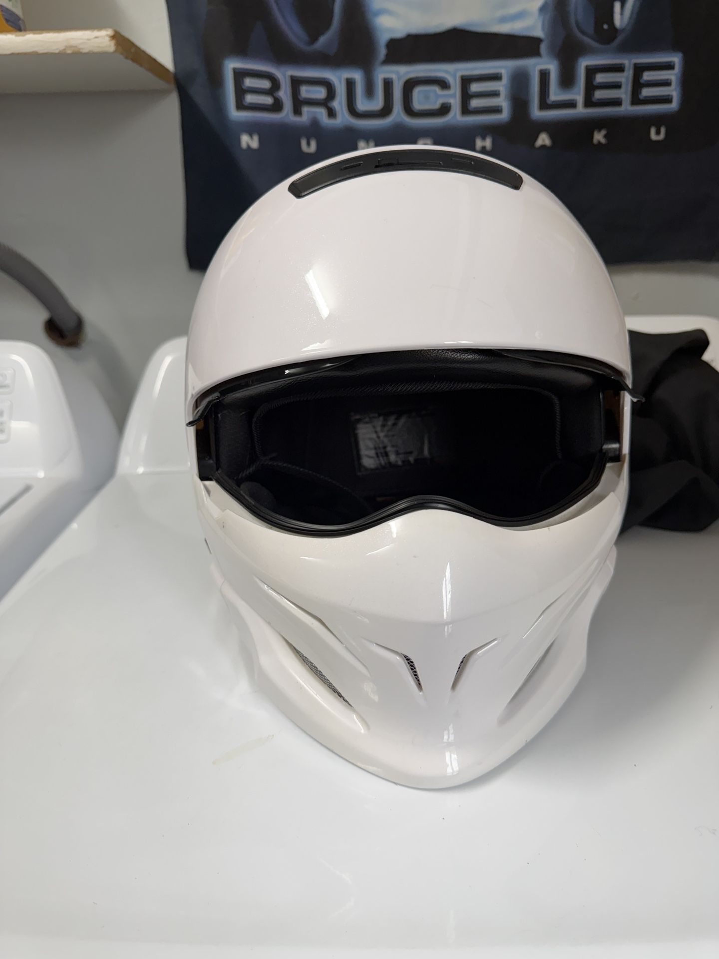 Hardly used Bought from https://offerup.co/faYXKzQFnY?$deeplink_path=/redirect/ pick up only Specifications Product Weight: 2.7lbs Package Dimensions: 13" x 10.5" x 11.5" Color: Gloss White & Matte Black Size: Extra Extra Large (XXL)
