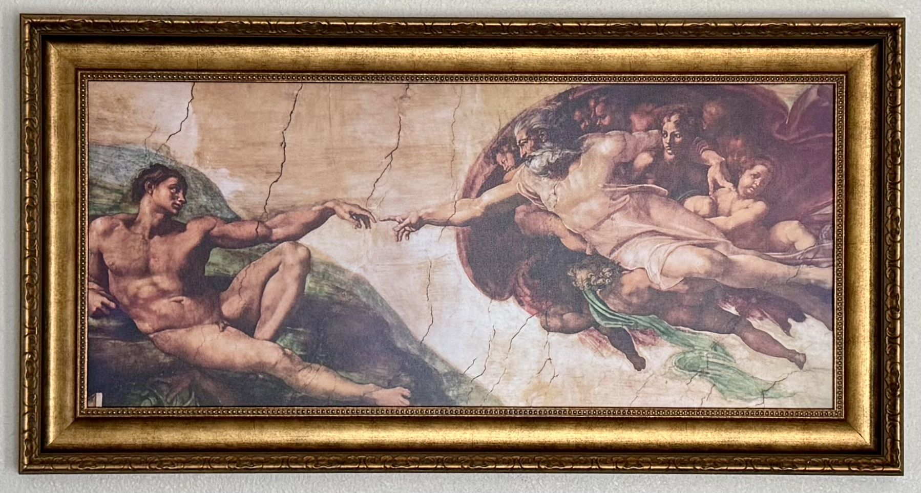 God and Adam Hands Detail Canvas Art Print Stretched Framed Painting Picture Poster Giclee Wall Decor by Michelangelo - 42”x22”