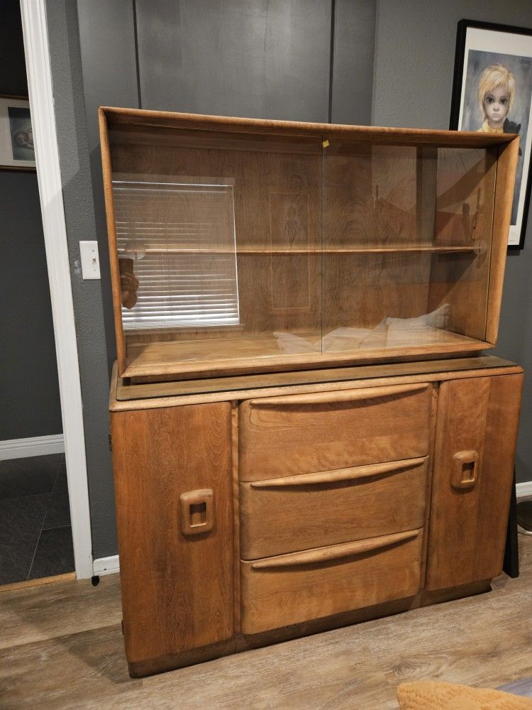 Stamped Heywood Wakefield. Rare hutch. 2 pieces. Excellent condition.