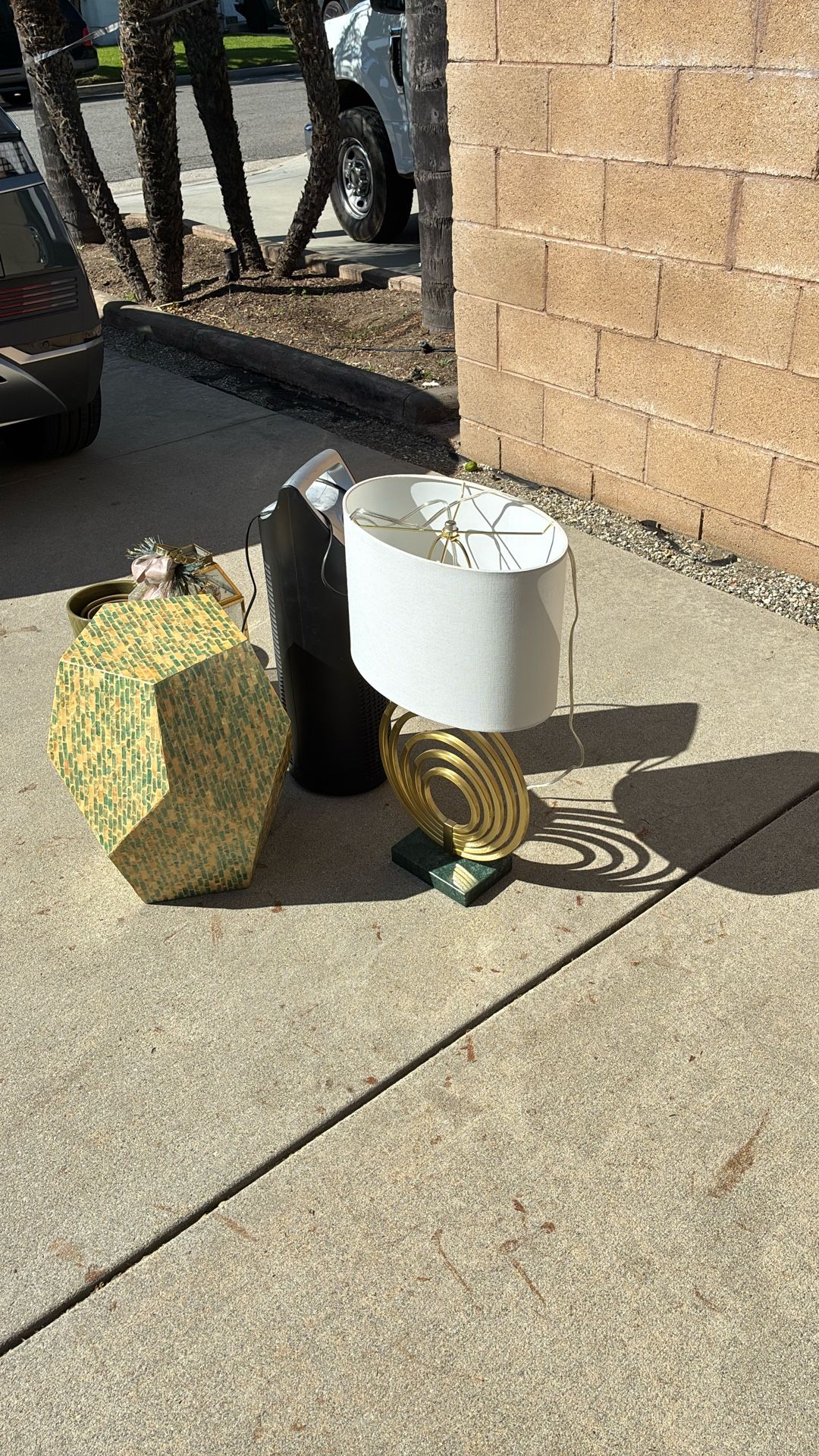 Moving boxes. Lamp. Air purifier. Candle light. Flower pots. All except for boxes going to goodwill this afternoon.