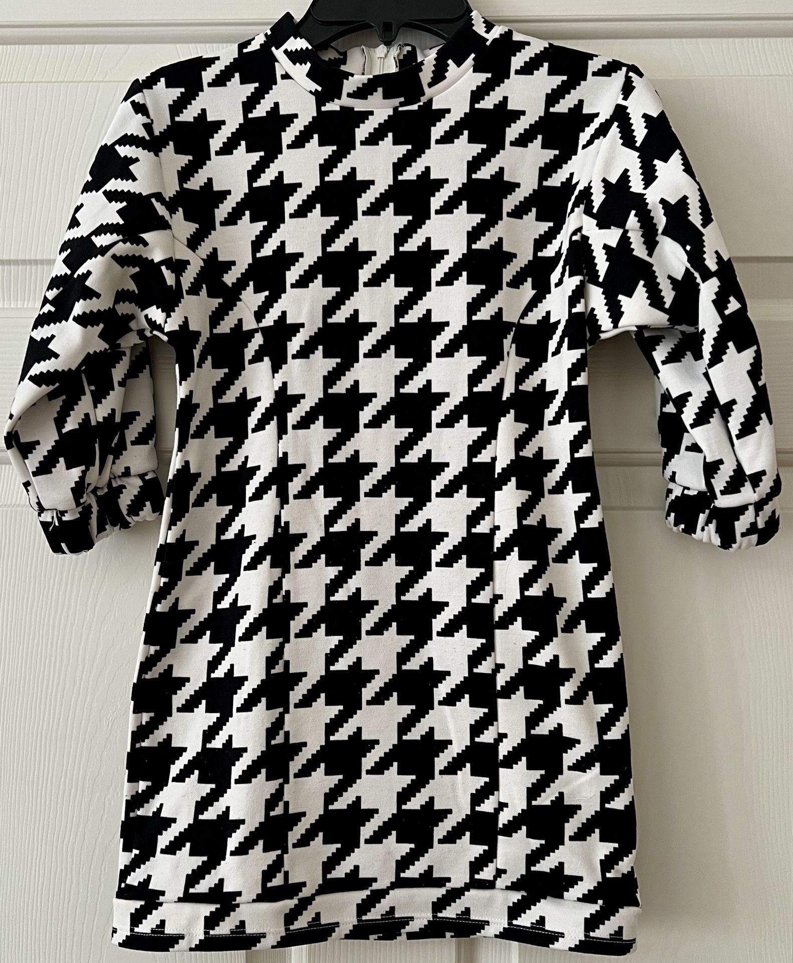 Wonder Nation Girls Dress, size Small 6/6X, the sleeves are about 3/4 length. The is color black and white. In great condition.