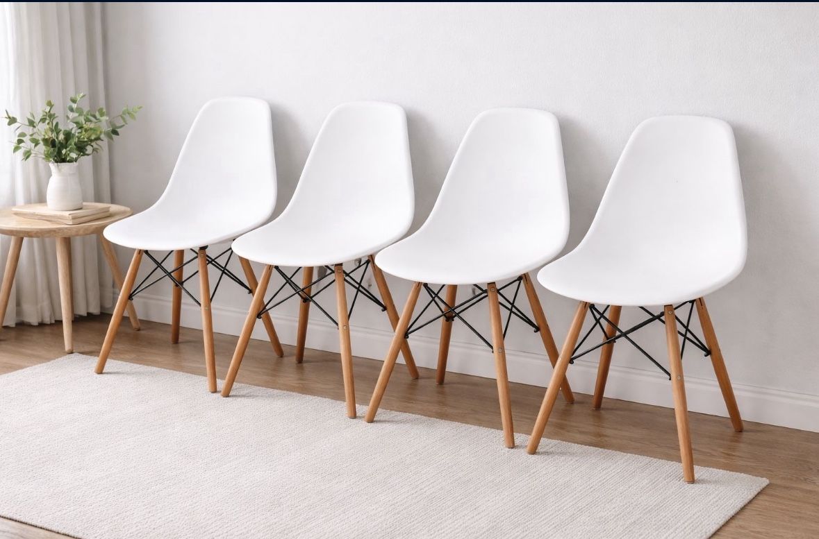 YES, IT IS AVAILABLE. Set of 4 modern white molded plastic chairs with wood legs. Clean, sturdy, great condition. I have many more items available in my Marketplace store - check my profile for bundle discounts. s $100 (set of 4) ® Pickup: Mission Valley , SAME DAY DELIVERY available • Item can be reserved with advance payment - check my Marketplace history for reliability.