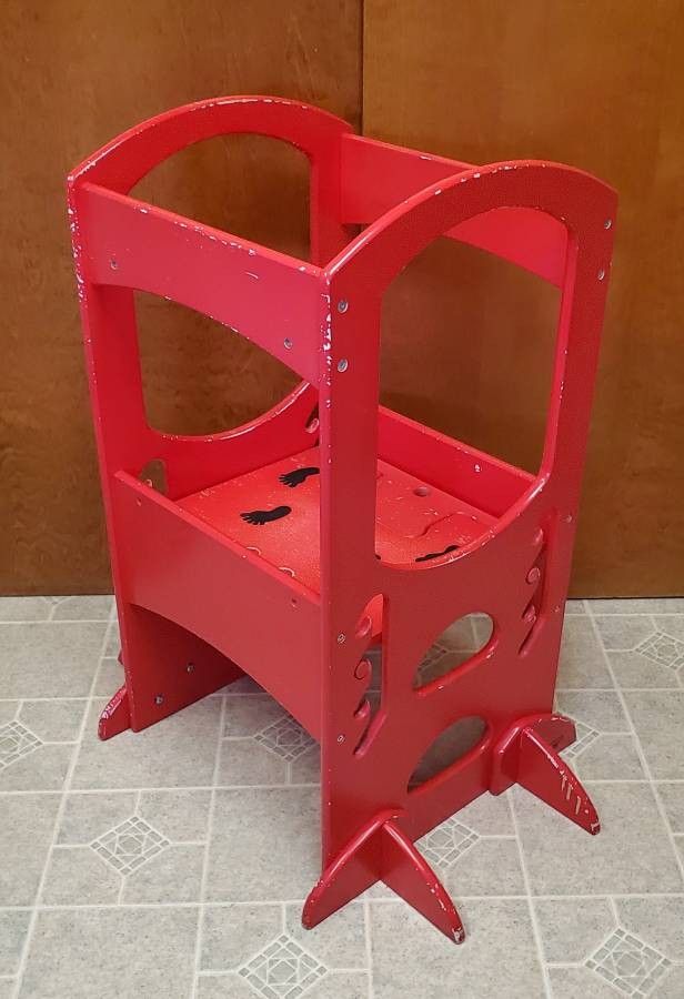 Red Original Learning Tower. Sturdy. Paint has worn. Please see pictures