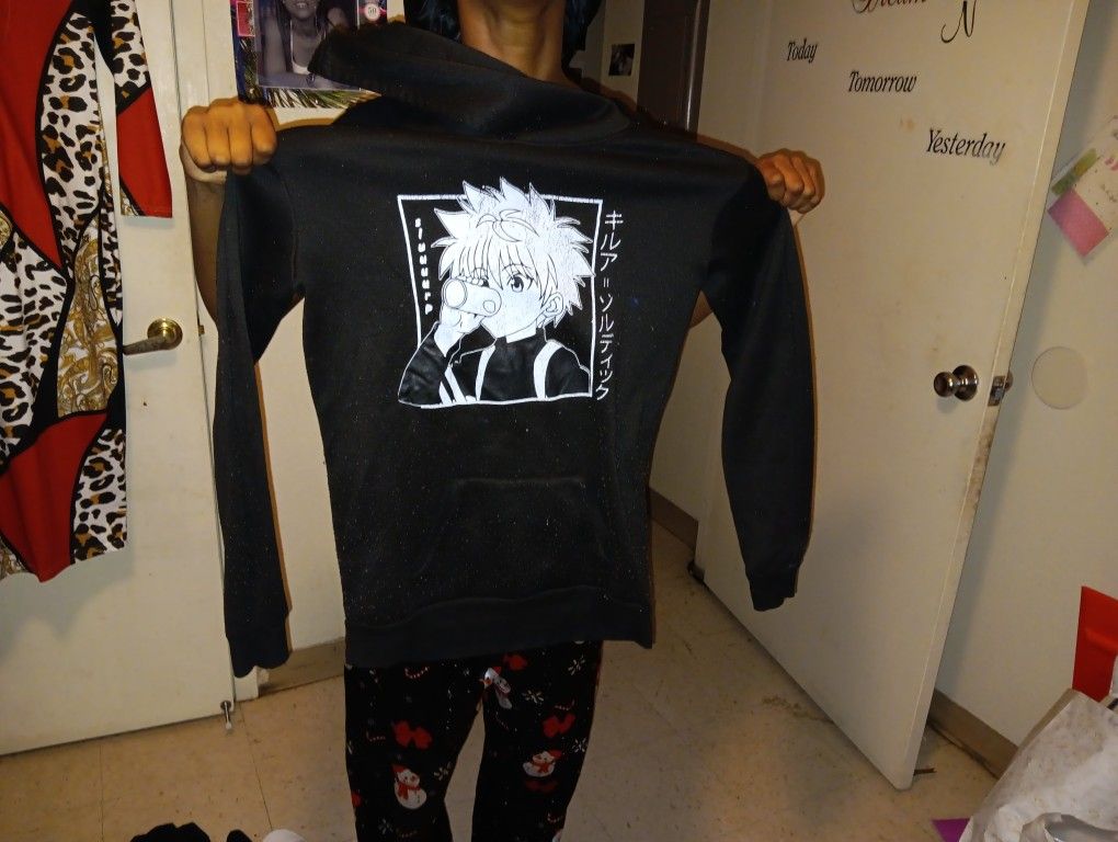 This Killua Anime Black Medium Pullover, is very nice, fits snug and will keep your body warm, very nice sweater!! Check It OUT!!