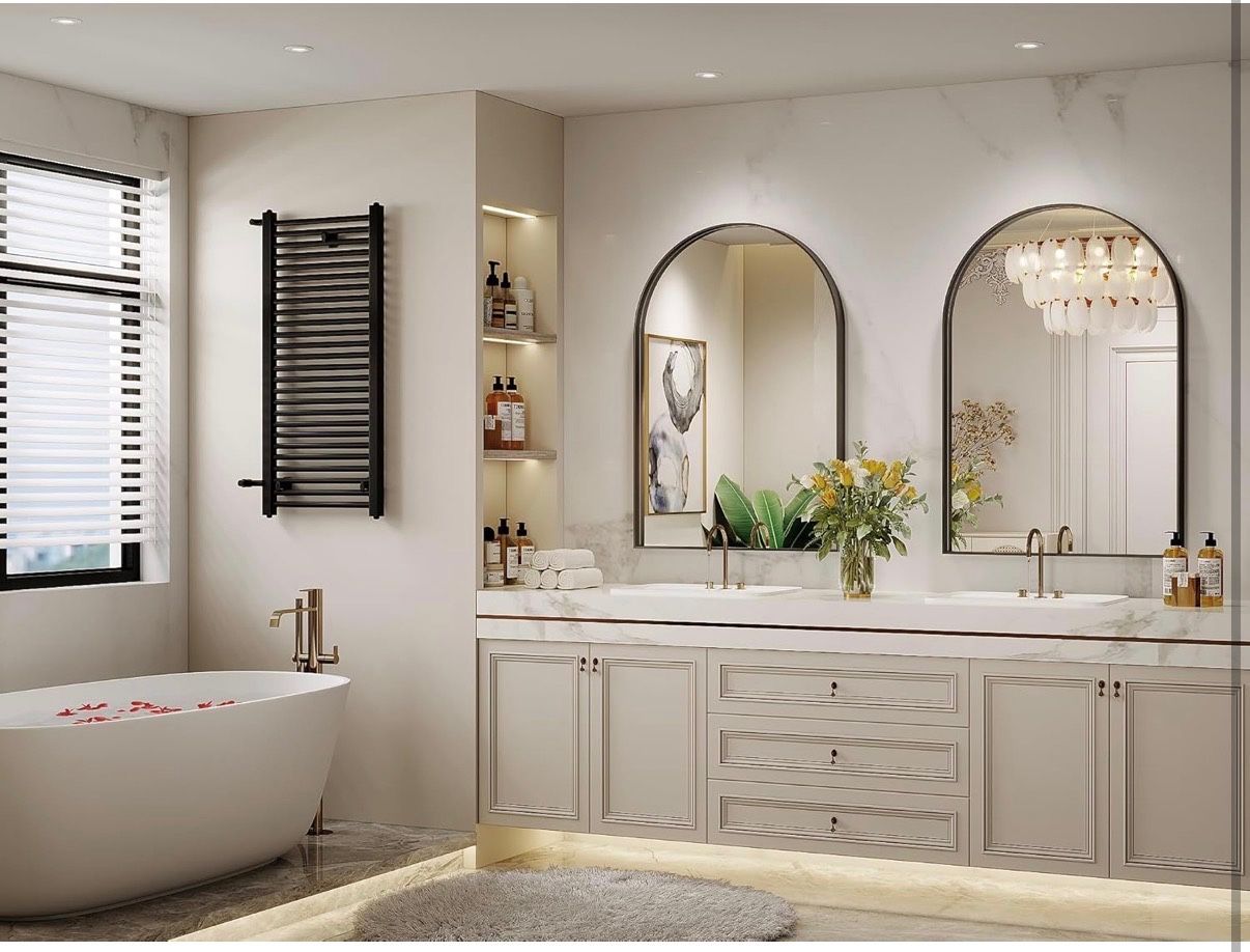 Arch Mirror for Wall, 24 x 36 Inch Black Arch Mirror for Bathroom, Arched Wall Mirror, Aluminum Alloy Frame Black Bathroom Vanity Mirror for Living Ro