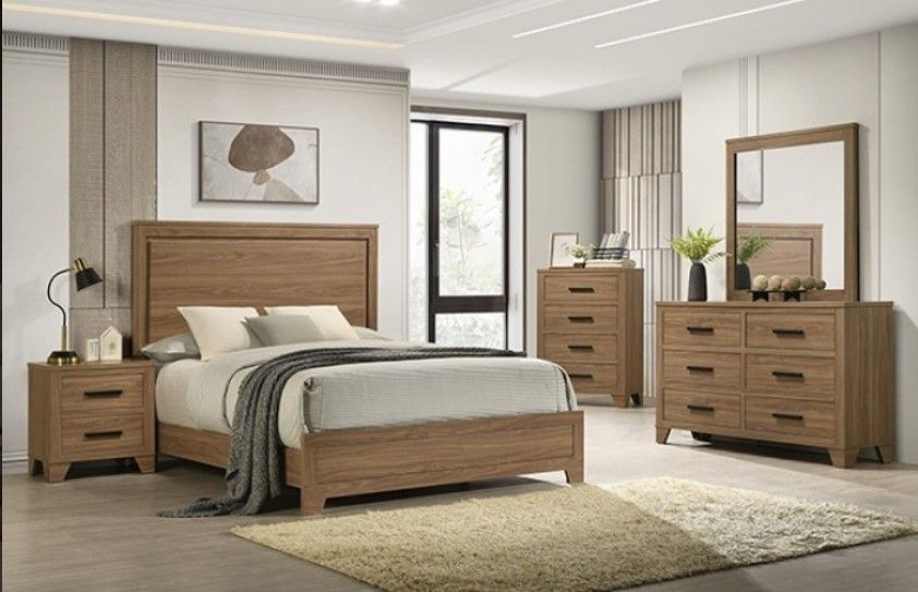 Brand New Delivery Available ●●●Mattress is NOT included ●●● Chest Available upon Request Set includes: 1 Queen bed Frame 1 Dresser 1 Nightstand 1 Mirror