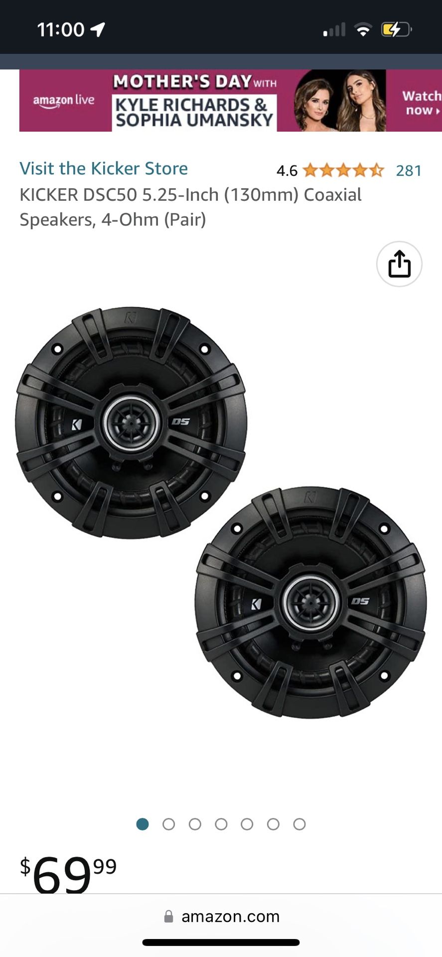 KICKER DSC50 5.25-Inch (130mm) Coaxial Speakers, 4-Ohm (Pair)