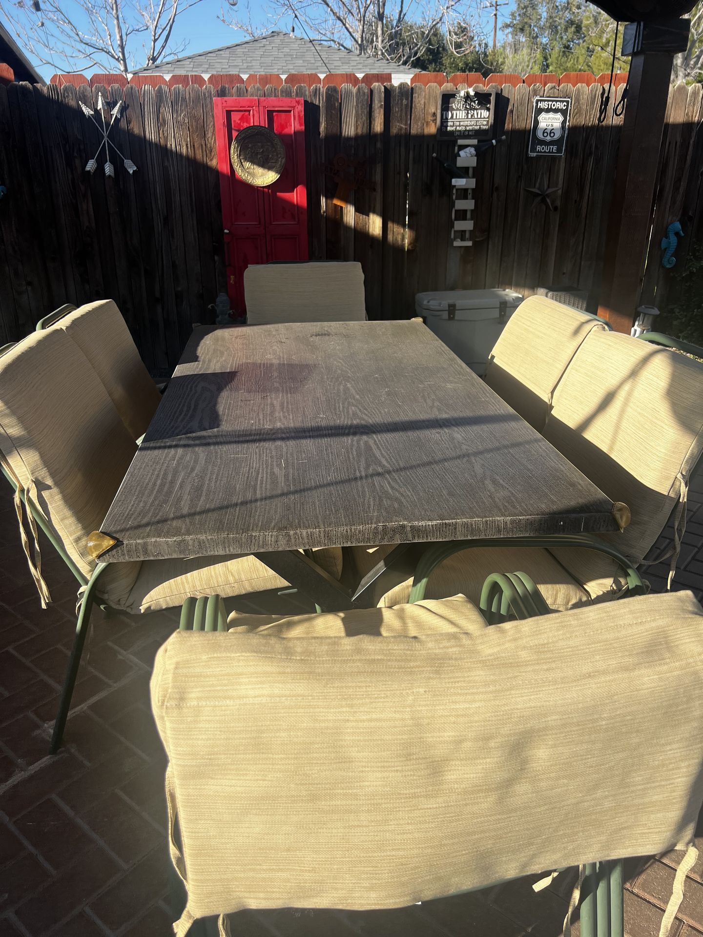 Mesa de patio con sus 6 sillas todas las sillas con sus respectivas colchones todo en buenas condiciones no menos