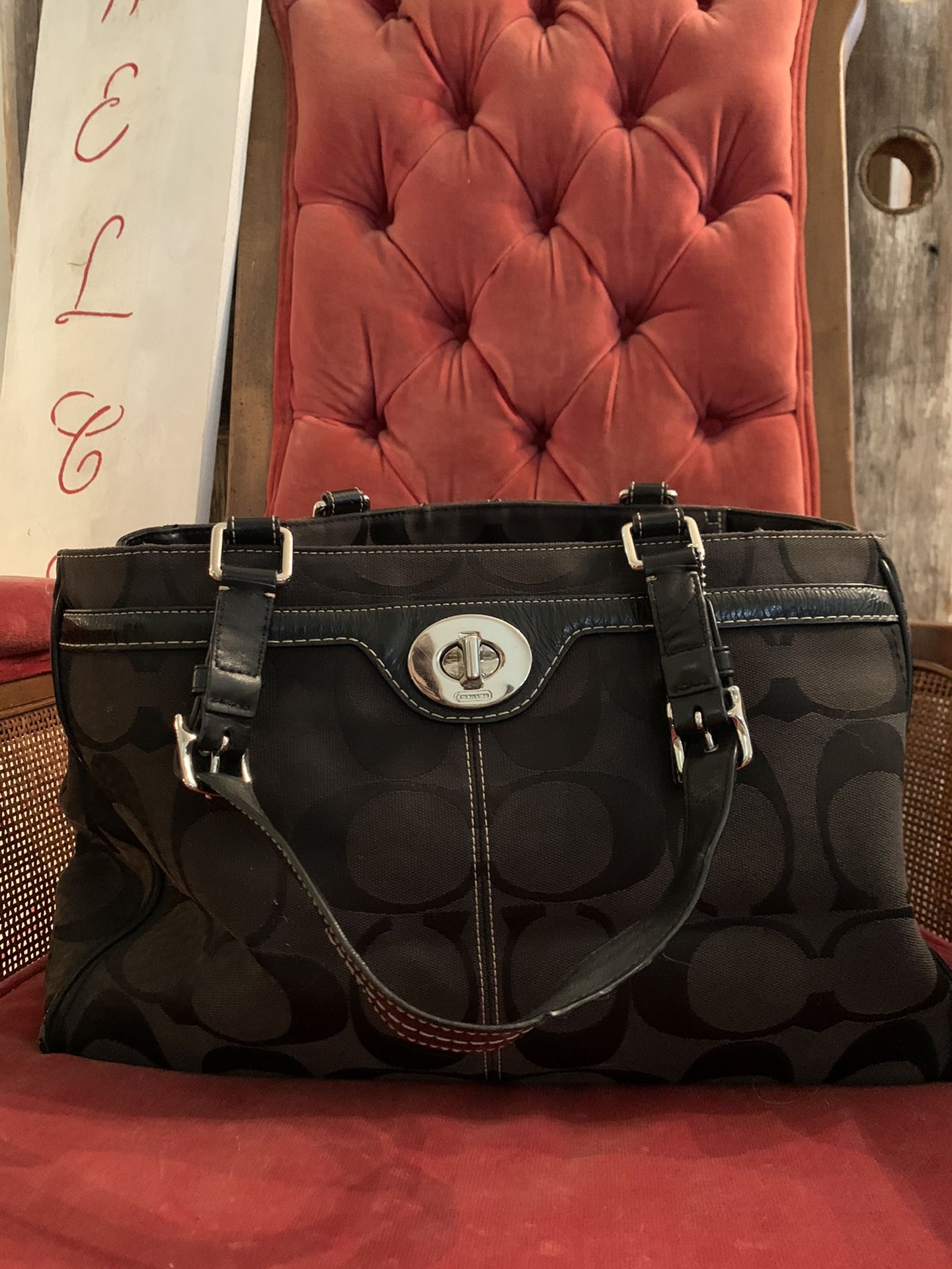 Black with silver hardware Coach purse. Good used condition. Great Christmas gift!