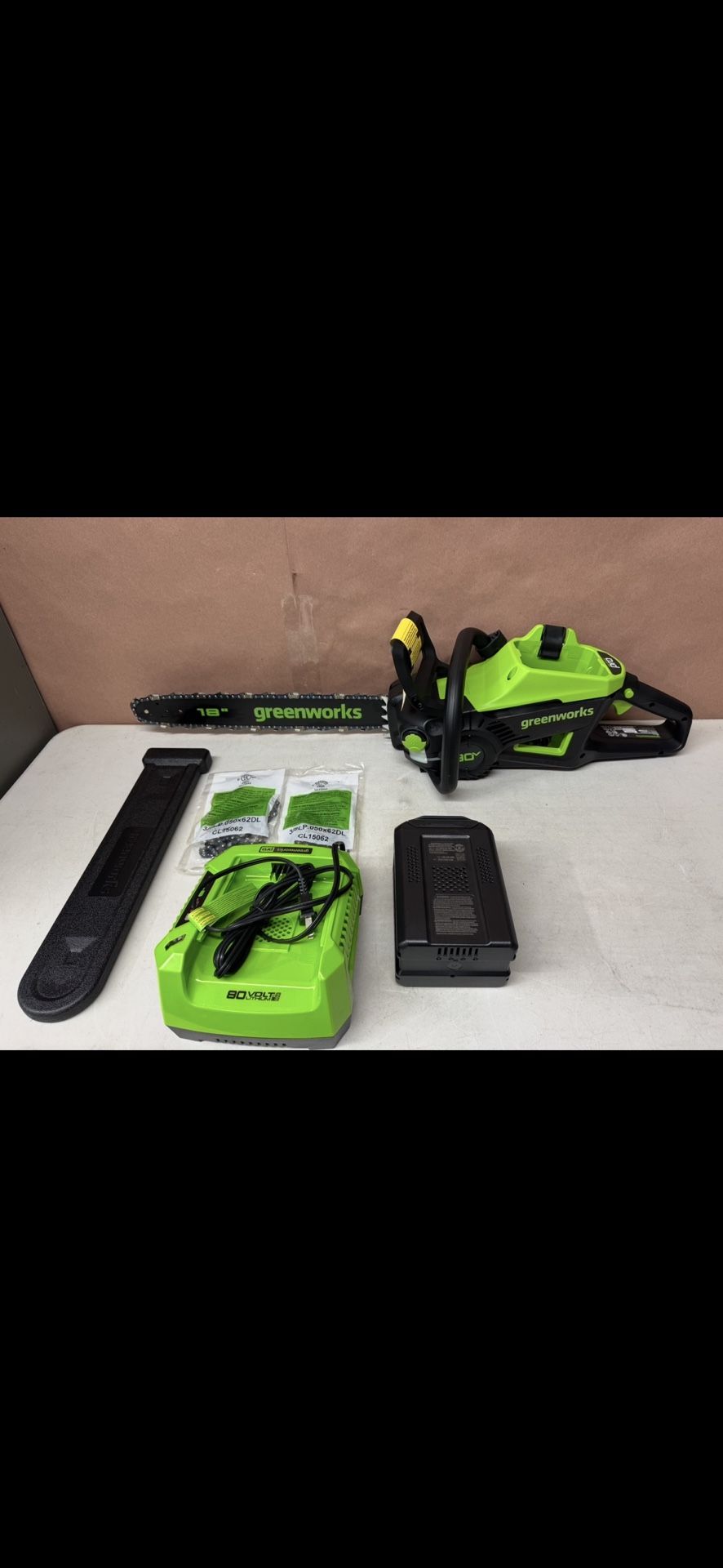 Brand New, Never Used Greenworks Pro 80-volt 18-in Battery 4Ah Chainsaw Battery Included Charger Included $220 price is firm No holds, unless deposit paid ahead. lowball offers will simply be ignored. Do not ask if available. If it's up, it's still available. Pick up in N Highlands or can meet anywhere along Greenback or Madison M-F, would need a days notice. Delivery can be arranged for an extra charge.