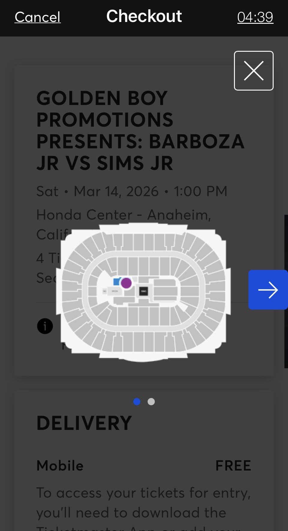 Boxing Event Floor Seats 3/14 Honda Center