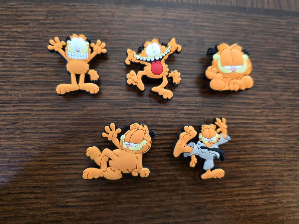 Lot of 5 Garfield Shoe Charms Charms are for Croc Shoes. Not Croc brand but functions the same I do ship, click buy now on listing to purchase and I will ship them to you