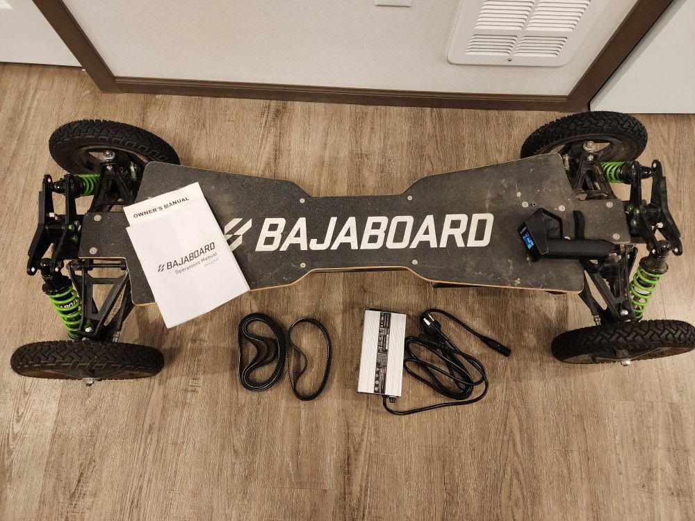This is a big boys toy. Adjustable suspension, LED lights, adjustable user settings, speed and torque. Ive gotten this thing up to almost 40mph. It can take some serious terain. This thing is fully functional and i have honestly only ridden it less then a dozen times and thats the reason im selling it. It doesnt get enough use. The batteries will last about 20-30 miles depending on riding style on a full charge. It is a 2018 G4 Baja Board. I have original manual, extra drive belts, original remote, and charger. Brand new they sell for around $4K im asking half of that.