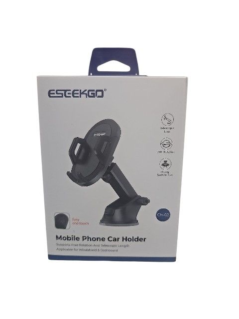 ESR mobile phone car holder in black. Features 360° rotation and strong suction cup.