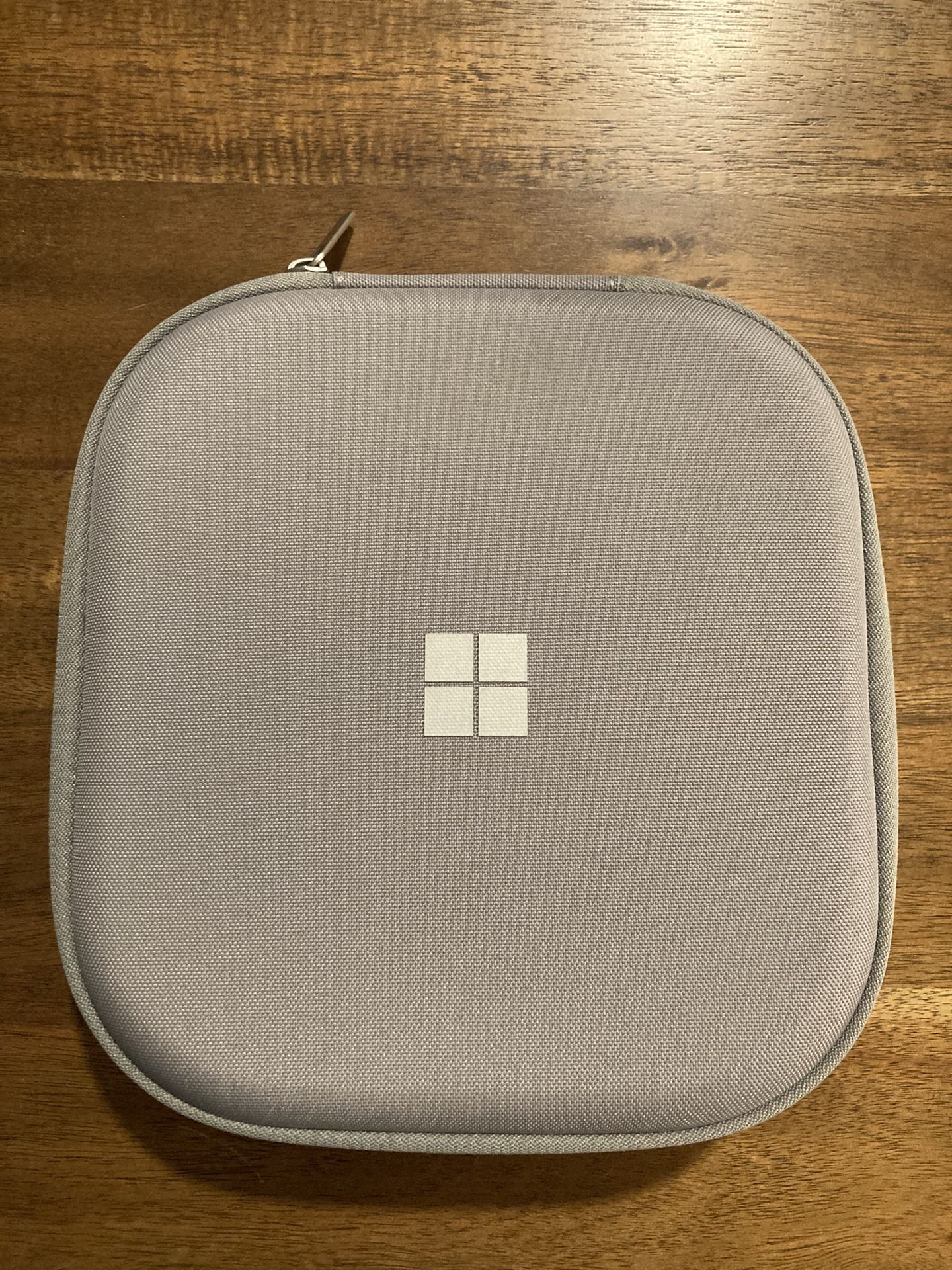 1st generation Microsoft surface headphones. Still in working condition, no connection or sound issues. Comes with case, charging cable, and headphone cable. Case has a water stain on it (see picture) . Headphone cups need to be replaced and can be purchased on Amazon or ebay.