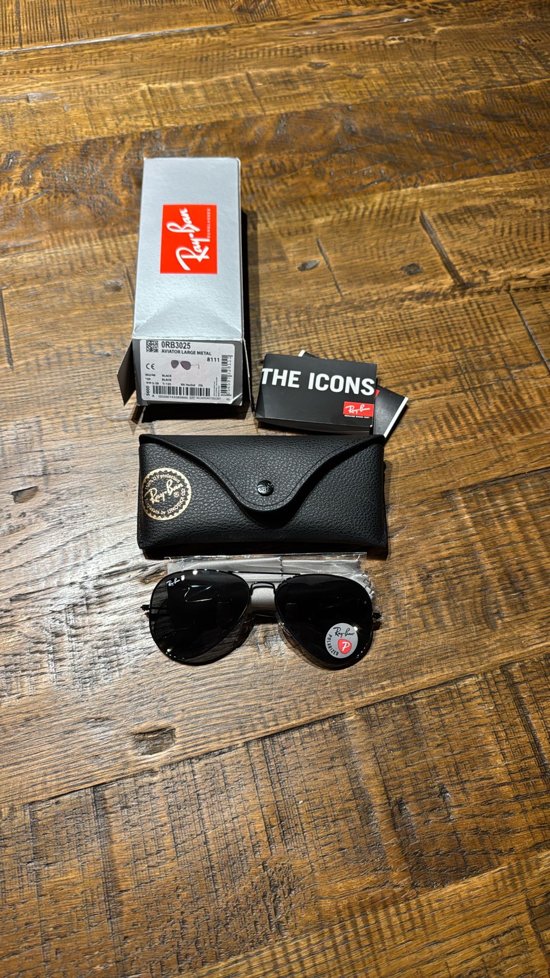 Ray Bans Polarized Aviator Large Metal, Black Lens & Frame