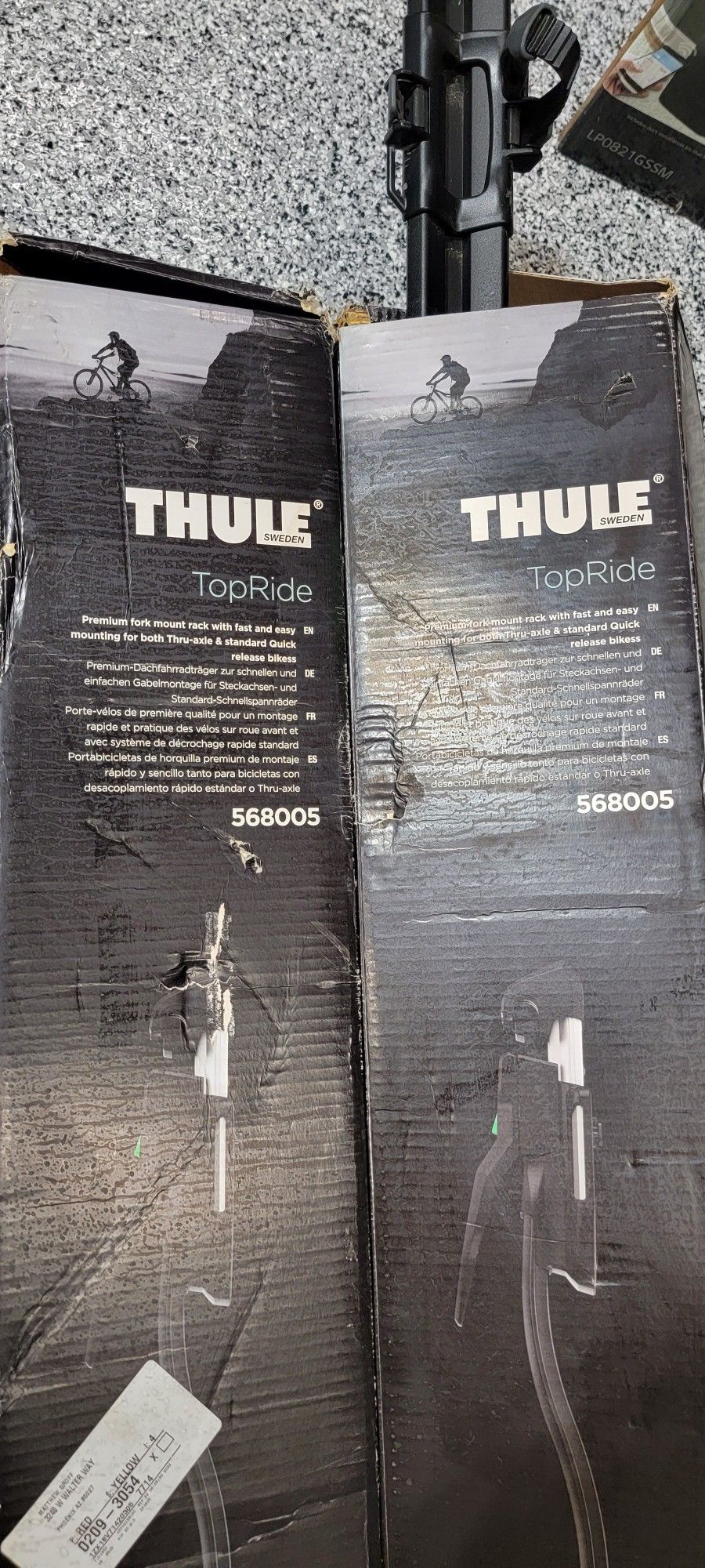 Brand new, never used Thule bike carrier. Bought it for my car then the car was totaled in San accident. I paid$600 plus tax for the pair on Amazon.