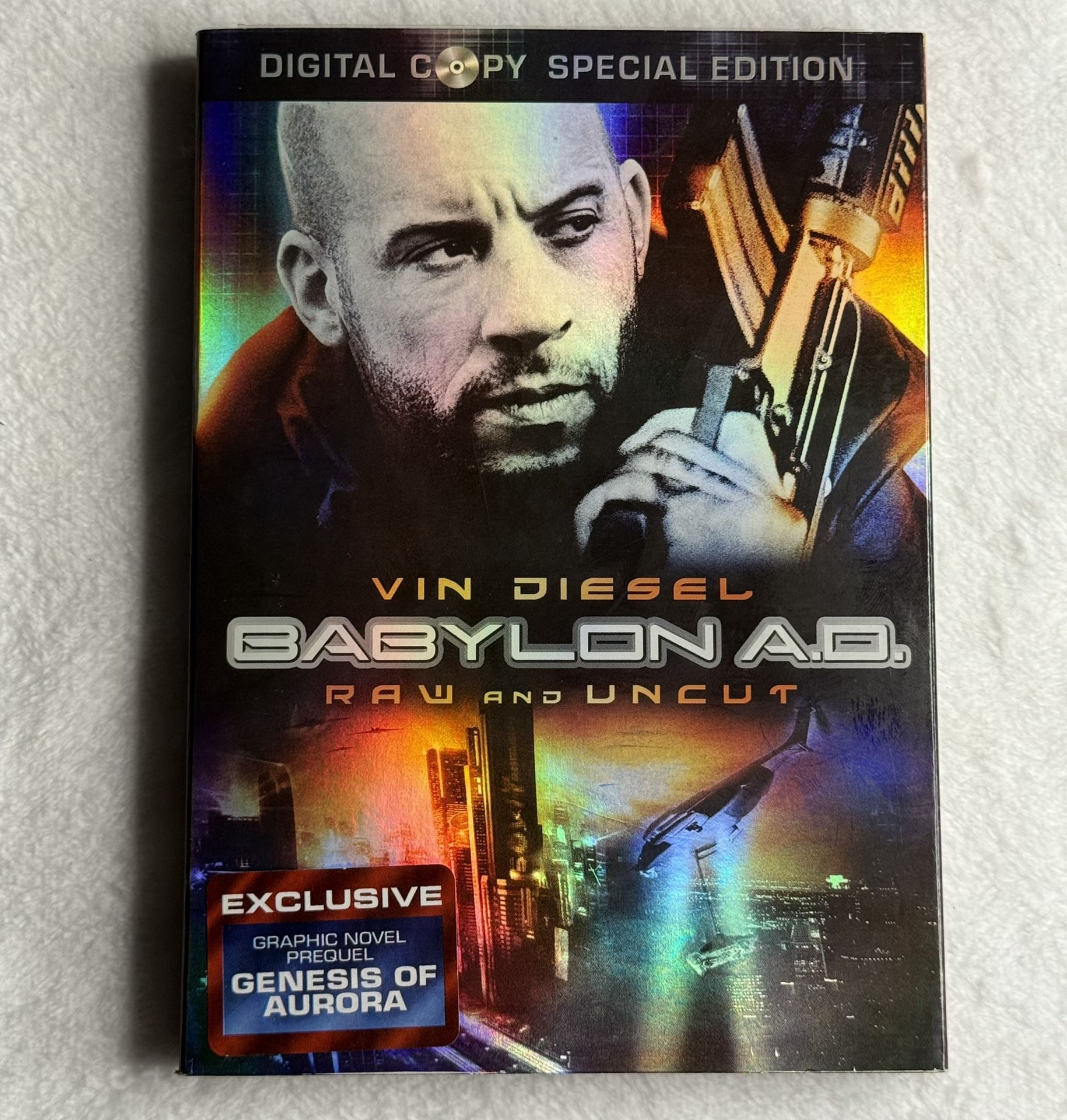 π¬ Description: Babylon A.D. β Raw and Uncut (Digital Copy Special Edition) is a gritty, futuristic sci-fi action film starring Vin Diesel, delivering an extended, uncensored cut packed with explosive action and bonus content. Set in a dark post-apocalyptic world, this edition includes exclusive special features and a graphic novel prequel: Genesis of Aurora. This 2-disc DVD set features the Unrated Extended Cut plus a portable digital copy disc (original digital copy code status unknown). A great addition for collectors of sci-fi films, Vin Diesel fans, or physical media enthusiasts. Condition Notes: β’ DVD Discs: Very good condition with light surface marks from normal use β’ Case: Original case included; shows minor shelf wear β’ Artwork / Inserts: Included and intact β’ Digital Copy: Disc included; code redemption not guaranteed due to age (See photos for exact condition and contents.) π Details: β’ Title: Babylon A.D. β Raw and Uncut β’ Starring: Vin Diesel β’ Genre: Sci-Fi / Action / Thriller β’ Format: DVD β’ Discs: 2 (Movie + Digital Copy Disc) β’ Edition: Digital Copy Special Edition β’ Cut: Unrated Extended Cut β’ Release Year: 2008 β’ Studio: 20th Century Fox β’ Video Format: Widescreen β’ Audio: Dolby Digital 5.1 β’ Region: NTSC / Region 1 (U.S. & Canada) β’ UPC: 0(contact info removed)8