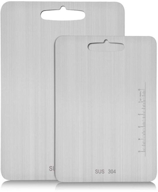 14.2" x 9.8"and11.24" x7.87") Stainless Steel Cutting Board for Kitchen,SUS 304 Chopping Board for Meat,Fruit,Vegetables,Baby Food,Dishwasher Safe(2pcs)…