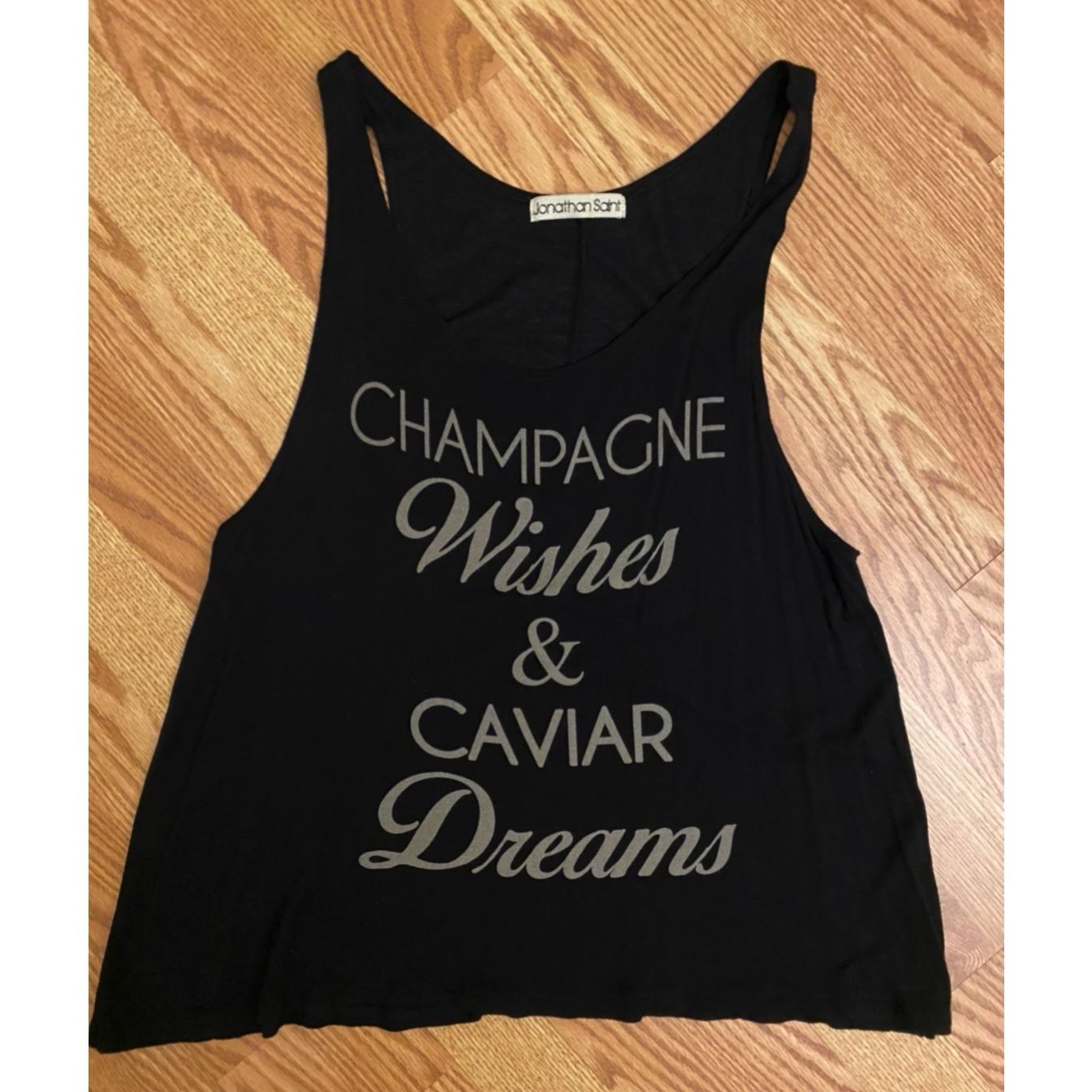 JONATHAN SAINT “Champagne Wishes & Caviar Dreams” GRAPHIC TANK BLACK SIZE SMALL - Runs a little big LIKE NEW CONDITION - only worn a few times