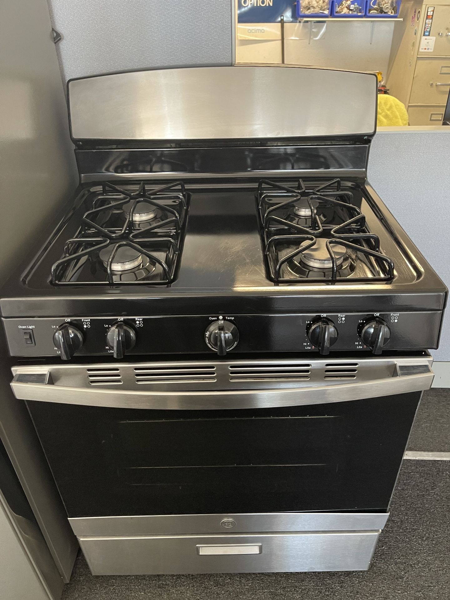 GE stainless steel stove has four burners oven and broiler has been reconditioned and tested. Comes with a 60 day warranty parts and labor free delivery drop off for Moreno Valley residence financing available ticket home today for a little less $10 down.