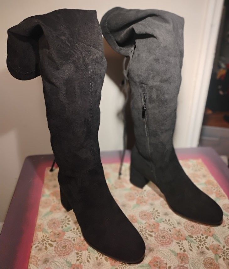 Black Thigh High Wide Calf Black Boots. Size 10