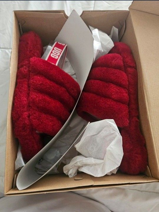 Red ugg slides bought but didn't fit and I forgot to return. Brand new never used!