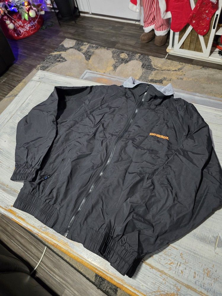 Whataburger Employee Jacket MEDIUM Black Zip Up Fleece Lined Windbreaker 2 Jacket available 40 each