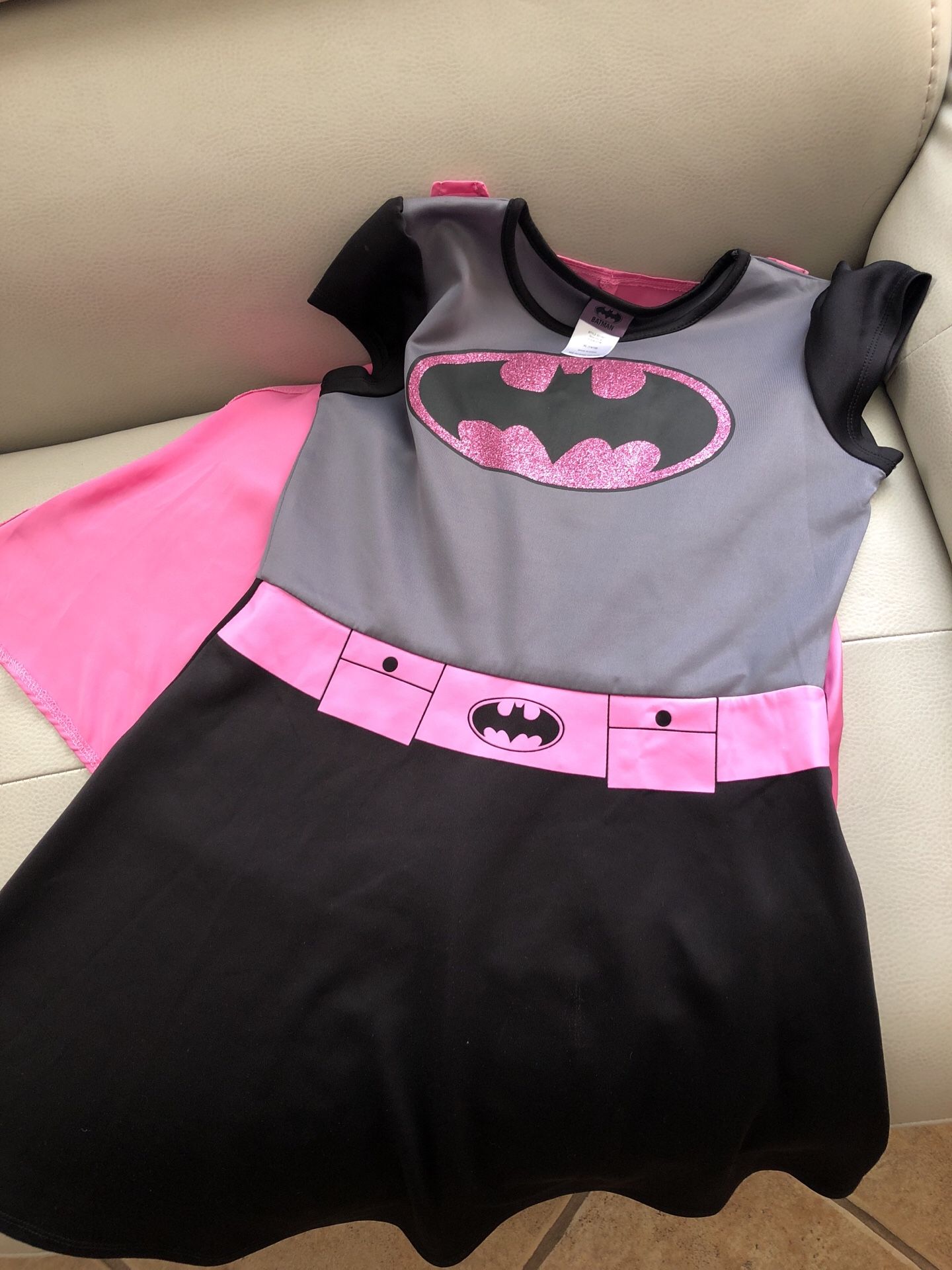 Brand new without tags never worn. Girls batgirl dress with cape size x-large 14/16. Great Halloween costume. Polyester and spandex.