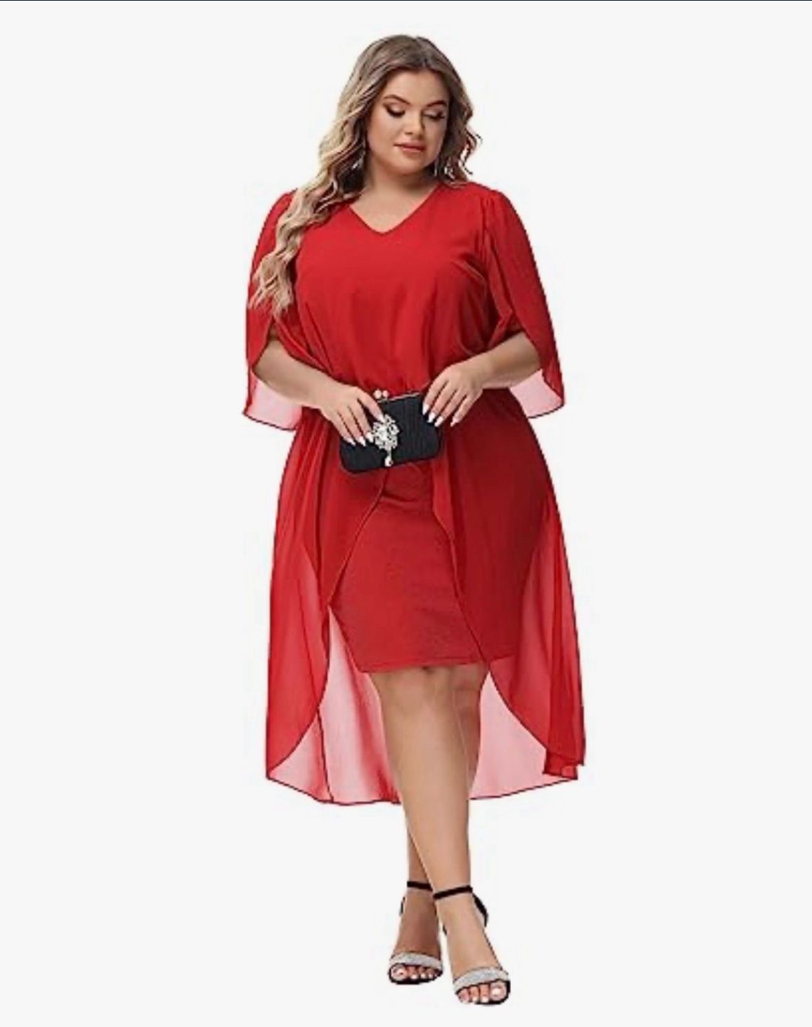 Hanna Nikole Women's Plus Size Chiffon Cocktail Dress with Ruffles 3/4 Sleeves High Low Hem Wedding Guest Party Dresses