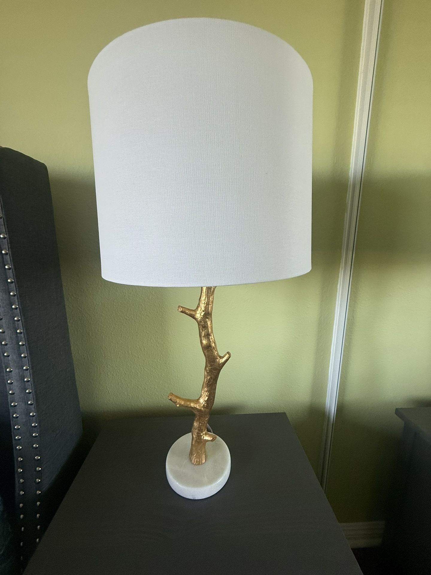 This is for one table lamp which is almost new, barely used. It has a white fabric shade and gold base. I paid $180 for it (high quality) and selling itfor a small price due to downsizing. Pick up only on weekends from Temecula.