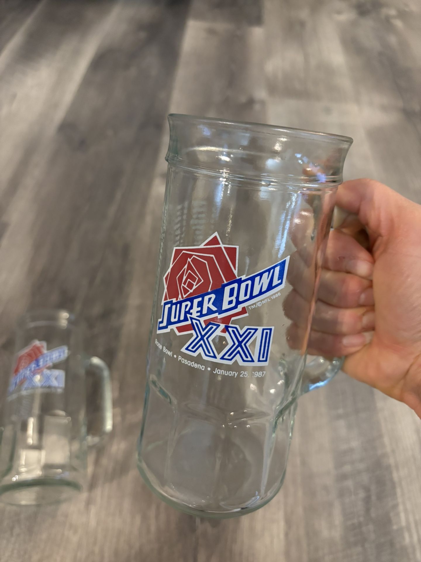 Enjoy Super Bowl with your collectable Super Bowl XXI beer mugs. Perfect shape. Cash only Local pick up only