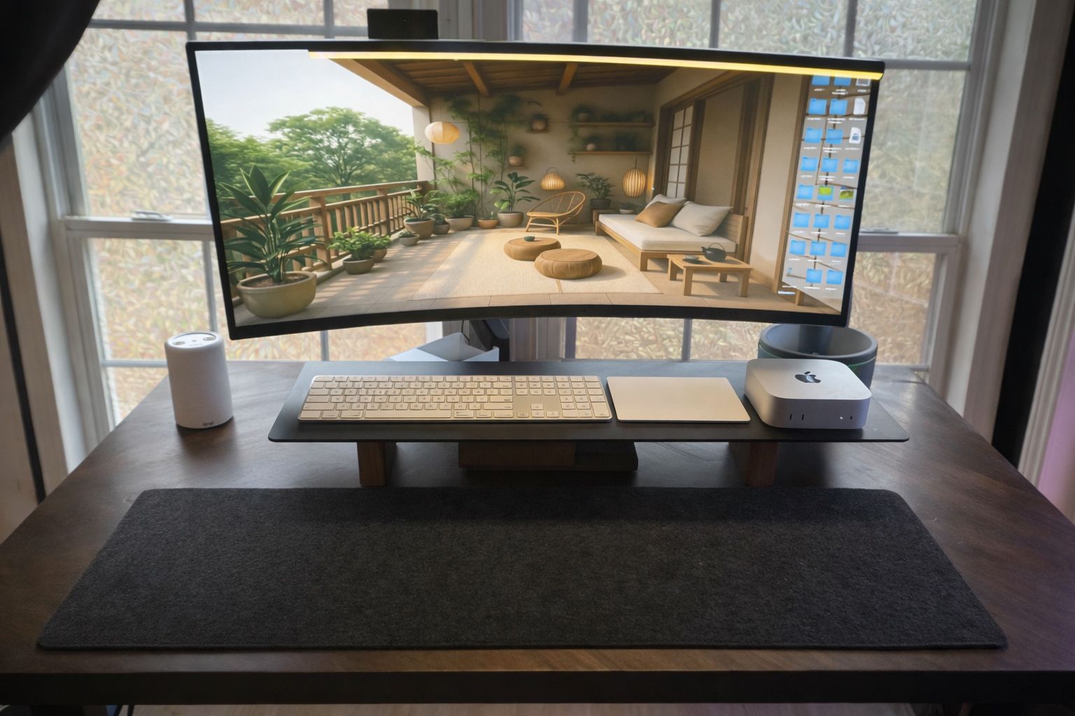If you’re a student, grad student, or remote learner who wants a clean, powerful, distraction-free setup without hunting down individual pieces, this bundle is for you. This is a fully built Apple desktop workstation — just bring your backpack and you’re ready to work. ⸻ 💻 What’s Included (Everything You Need) • Mac mini (2024) • Apple M4 chip • 16GB RAM • Fast, quiet, and perfect for school, research, coding, writing, design, and multitasking • Ultra-wide Curved Monitor • Tons of screen space for papers, split-screen studying, and Zoom • Premium Curved Monitor Arm • Adjustable height & angle (great ergonomics for long study sessions) • Artifox Wooden Monitor Riser • High-end solid wood riser with built-in storage (not cheap Amazon MDF) • Apple Magic Keyboard with Touch ID • Full-size, rechargeable • Apple Magic Trackpad 2 • Multi-touch gestures, great for macOS productivity • USB Webcam • Perfect for online classes, meetings, and proctored exams • Monitor Desk Lamp • Eye-friendly lighting for late-night studying