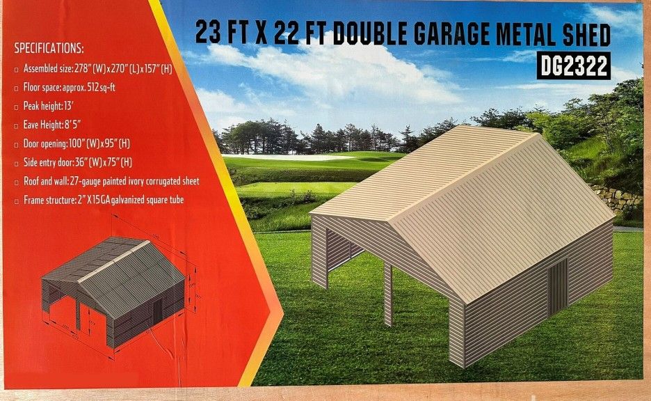 New in box 2 car 23x22 steel garage/shed/shop kit. Hardware and instructions are in the box. It is cream color. Full kit in one box weighing 1750 pounds. I can load or deliver locally