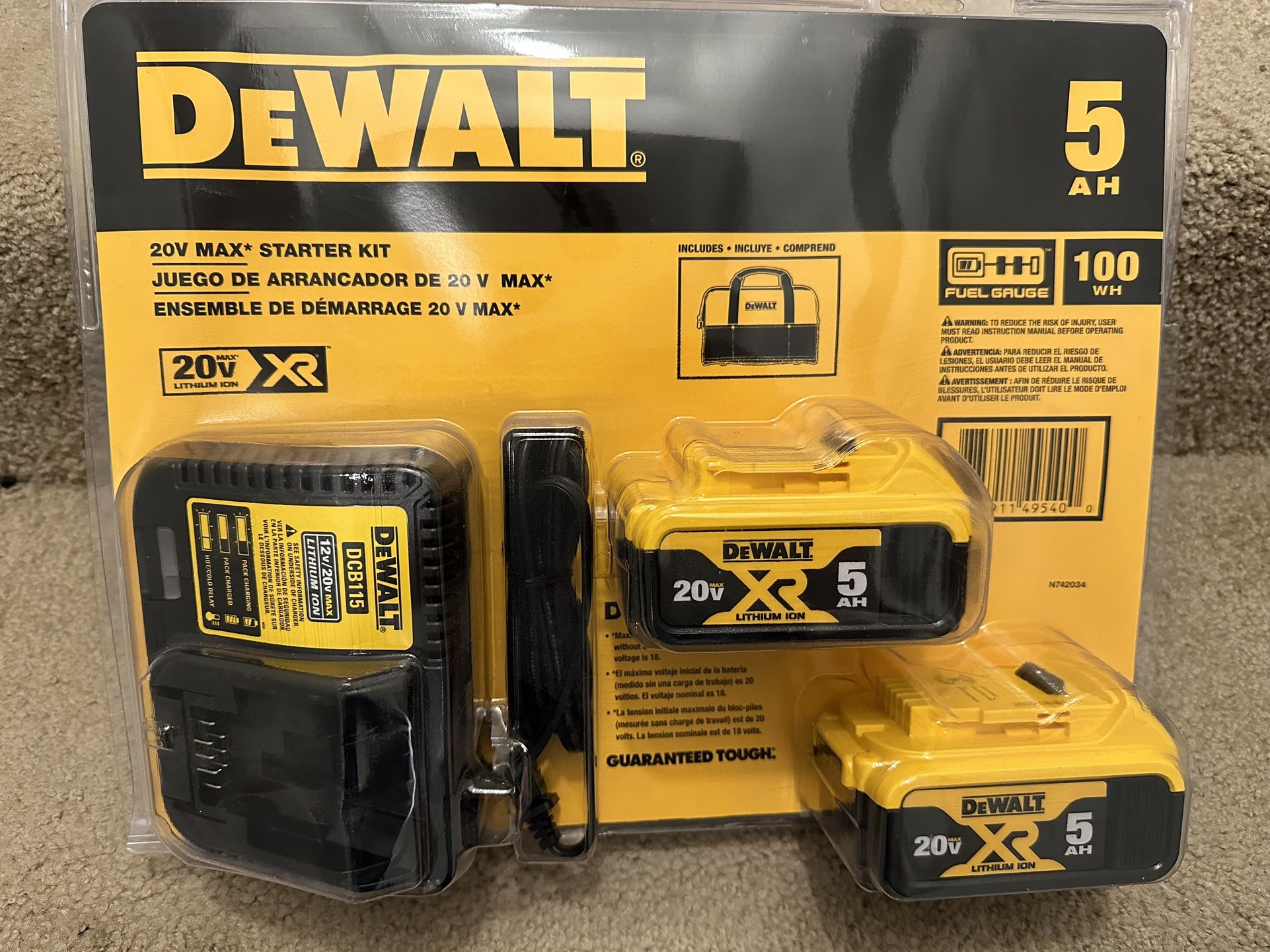 Brand new 20v 5AH battery, charger and bag. Dewalt calls it a “Starter kit”. I got the two pack as a gift, but I need flexvolt batteries for my 60v tools. I’ve broken the kit up and added a charger and a “craftsman” bag to the 2nd battery. 1 Battery, charger and Dewalt bag = $95 1 Battery, charger and Craftsman bag -$85 Price is Firm Thx for reading!