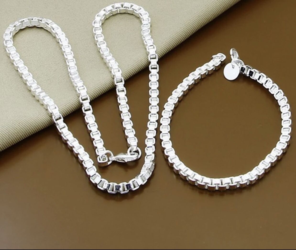2021 New Fashion 925 Sterling Silver 6mm Round Box Chain Bracelet &Necklace Sets For Women & Man Wedding Engagement Party Jewelry. Metals type: Silver Metal Stamp:925 Sterling Conditions :New